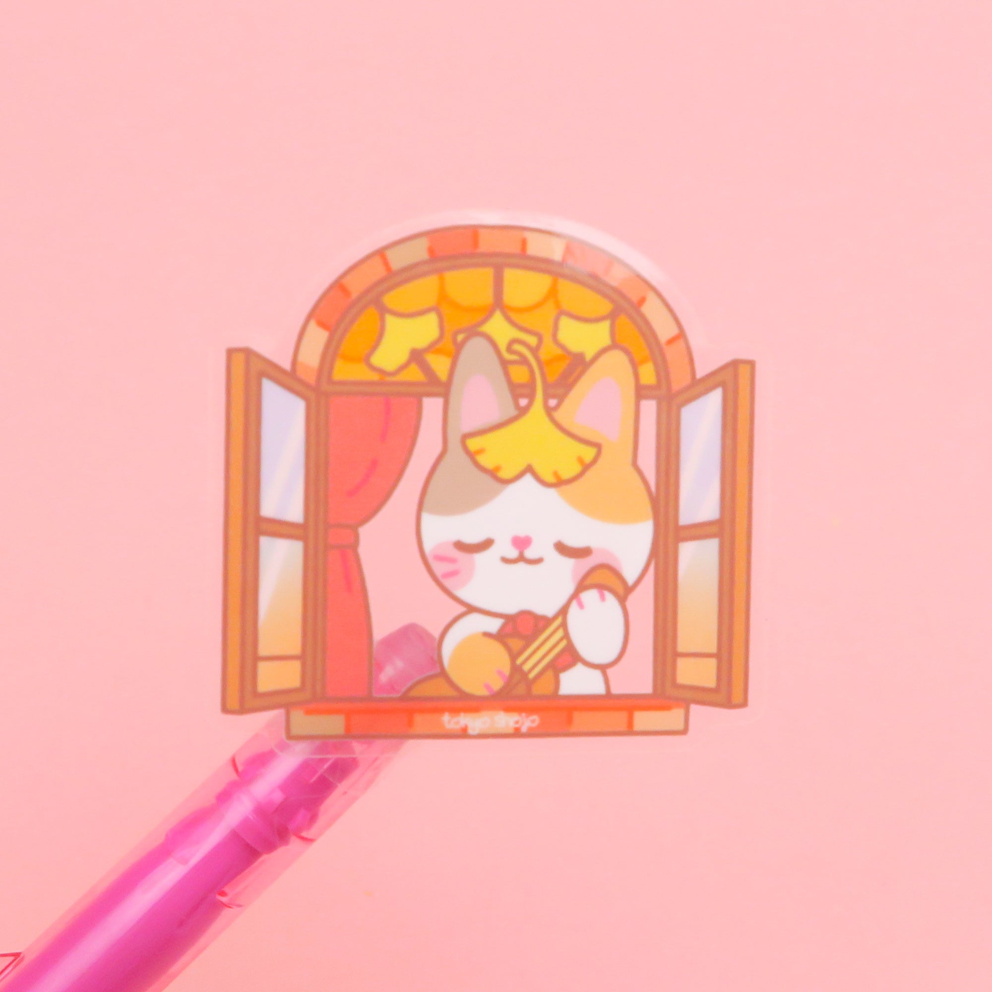 Koyo the cat enjoying calm day from his window. He's playing a mellow tune on his guitar while watching the sunrise.