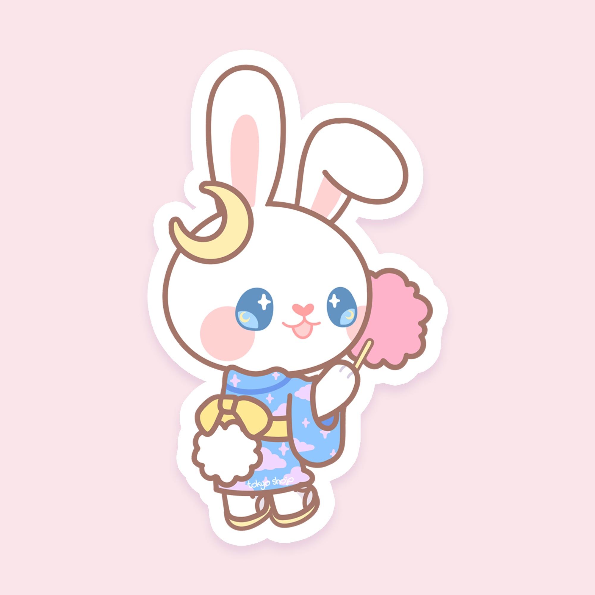 Tsuki the bunny wearing a yukata. Her cotton candy resembles her fluffy tale.