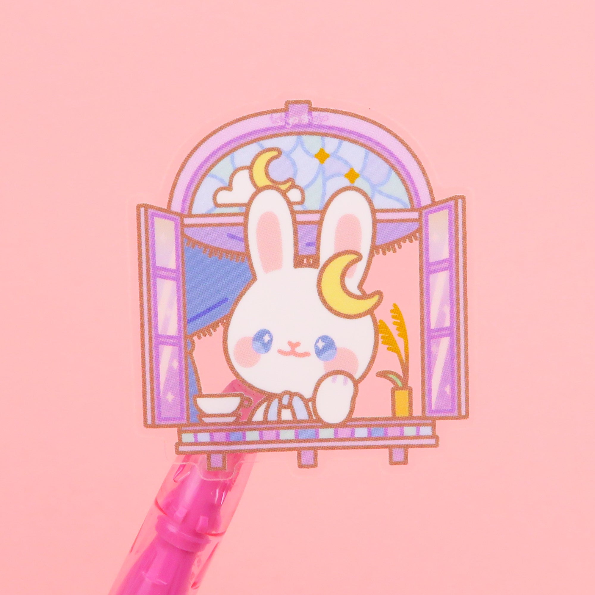 Tsuki the bunny stargazing out her window. There's nothing like winding down from a busy day under a starry sky with a cup of tea.